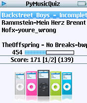 Recently, I played with iPod... I liked there MusicQuiz game, so I wrote similar game for S60... This is script in Python, it needs to be pre-installed. Tested on Symbian 8, on the 9.1 will not work because of fonts problem. Important! To play files in ogg format codec must be installed.